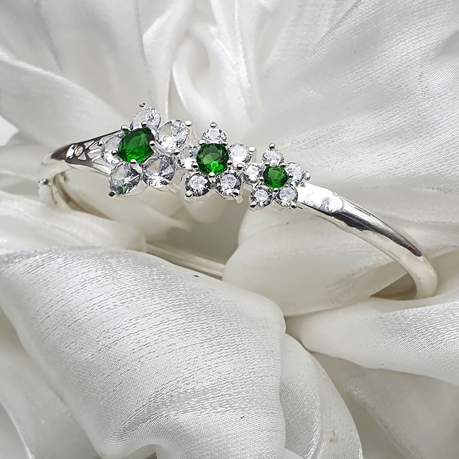Vòng , Lắc Tay Nữ BẠC HIỂU MINH LTU315 Dạng Kiềng Hoa Đá Xanh Lấp Lánh