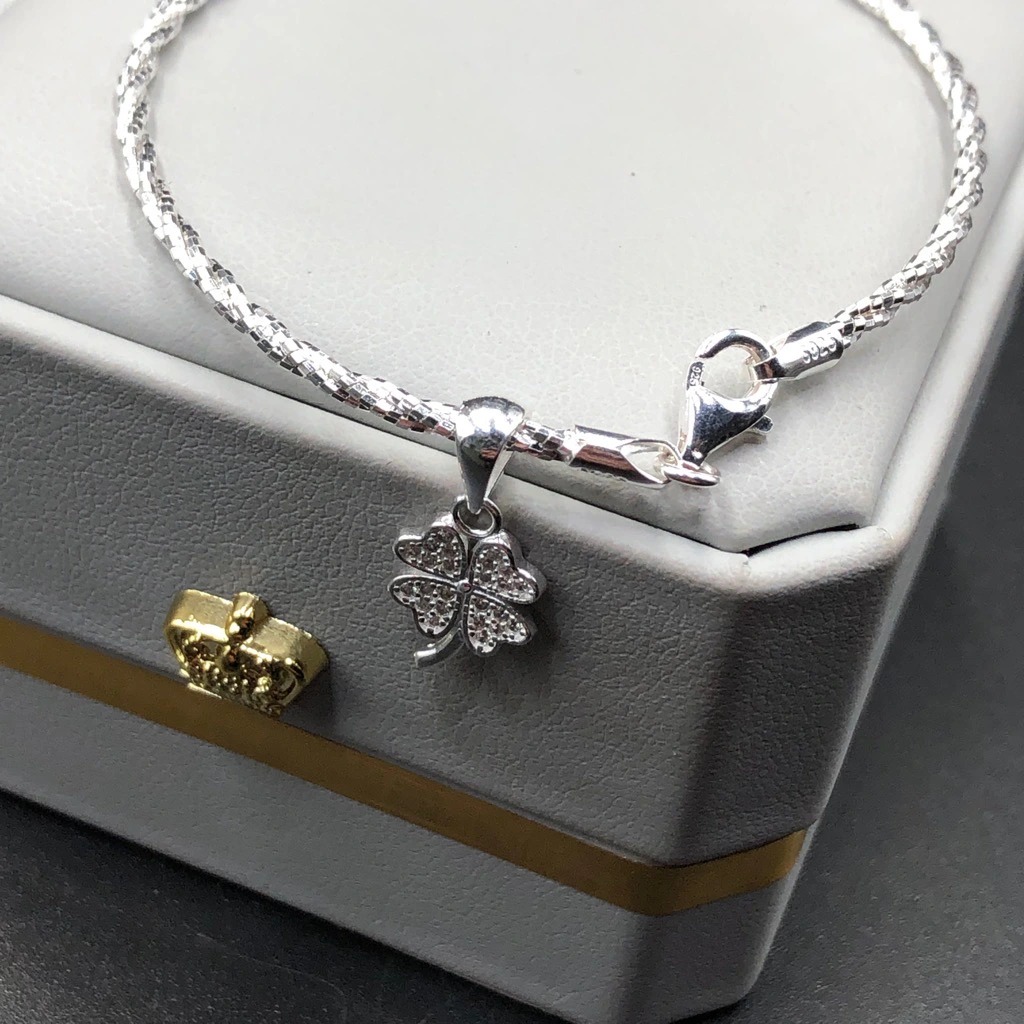 ✨Vòng Tay Lắc Tay Nữ Dây Xoắn Tròn Dạng Dây Mềm Mix Cỏ 4 Lá May Mắn Bạc 925 Cao Cấp Bạc Hiểu Minh LTU570S