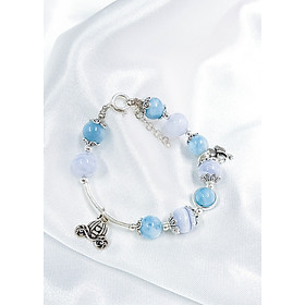 VÒNG TAY ĐÁ CHALCEDONY : Chalcedony sở hữu hoa văn và màu sắc đặc biệt cùng hiện tượng tán sắc vô cùng thú vị, rất ít xuất hiện ở những loại đá khác. Vòng tay Đá Chalcedony charm cây bạc mang đến điềm lành, giúp nuôi dưỡng và ổn định tinh thần lẫn tình cảm ở chủ nhân, là món quà mà bất kì ai cũng mong muốn sở hữu. CÔNG DỤNG VÀ Ý NGHĨA CỦA ĐÁ CHALCEDONY: - Về mặt phong thủy - Chalcedony là viên đá của niềm vui, sự hân hoan và đức tính trung thực ở con người. - Kích thích sự hưng phấn, cảm giác lạc quan, yêu đời ở người đeo, dẫn lối cho họ đến thành công. - Lan tỏa nguồn năng lượng tích cực, giúp chủ nhân thu hút nhiều may mắn và tiền bạc trong cuộc sống. - Về mặt sức khỏe - Chalcedony giúp cân bằng và ổn định cảm xúc, được ứng dụng để phòng chứng trầm cảm, rối loạn tiến đình và một số vấn đề liên quan đến thần kinh khác. - Đeo đá thường xuyên sẽ giúp bạn có giấc ngủ ngon và tràn đầy năng lượng cho một ngày mới. - Hợp mệnh - Chalcedony Xanh phù hợp với người mệnh Mộc (theo tương hợp) và mệnh Hỏa (theo tương sinh). CÁCH BẢO QUẢN SẢN PHẨM: 1. Tránh để vòng tiếp xúc với các hóa chất. Khi mang nên tránh để vòng tay tiếp xúc với hóa chất tẩy rửa mạnh: javen, chất tẩy trắng, axit 2. Tránh va đập mạnh. Là sản phẩm được làm từ đá tự nhiên có độ cứng định, nhưng cũng sẽ vỡ, trầy xước khi va đập mạnh, nên tránh các trường hợp sau: - Không mang vòng khi chơi thể thao và các hoạt động mạnh khác. - Tránh va đập vòng, làm rớt vòng. - Tránh ma sát vòng với các bề mặt sắc cạnh như dao kéo hoặc bề mặt dễ gây trầy xước như xi măng, nền đá nhám, đá sỏi 3. Sử dụng và cất giữ vòng đúng cách. - Có thể tháo vòng khi đi tắm và khi đi ngủ.