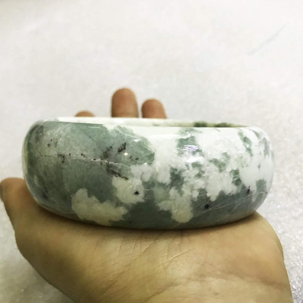 Vòng tay Nữ Đá Cẩm Thạch mới TR Lý 57 mm x cọng 7,5mm Màu Xanh lý tươi trắng 2 bên đều vòng đẹp Nữ 55kg - 64kg đeo đẹp món quà tặng chính mình