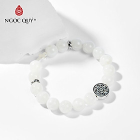 Vòng Tay Phong Thủy Nam Đá Xà Cừ Trắng Phối Charm Thánh Giá (10mm) Mệnh Kim, Thủy