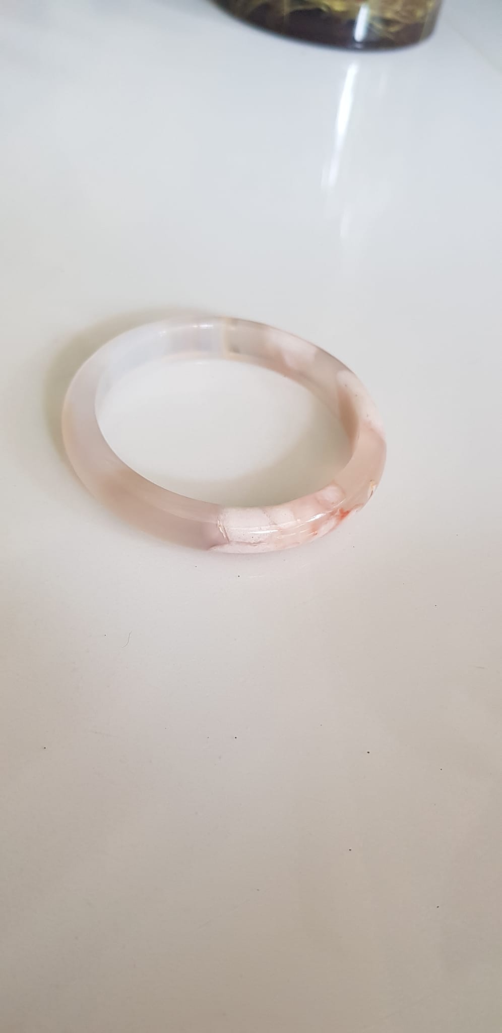 Vòng tay Nữ Bản Hẹ Mới Mã Não Bông Tuyết Hồng nhẹ trắng Ni 53mm Cao 11mm dầy 7mm Nữ 52kg - 55kg đeo