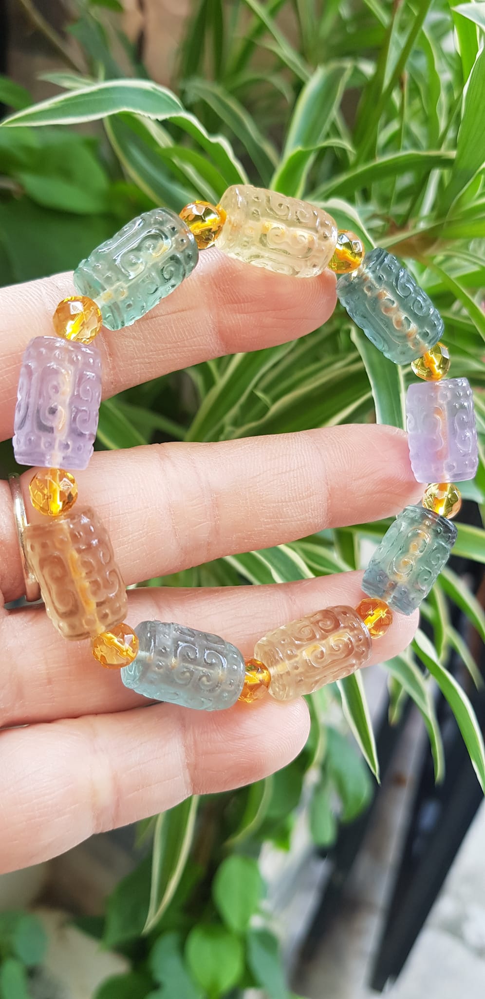 ✨Vòng Tay nữ charm cao cấp Đá Fluorit tự nhiên đa sắc màu kiểu hạt 10mm phối tròn đẹp sang các Chị đeo xinh tay may mắn tài lộc cả năm ạ