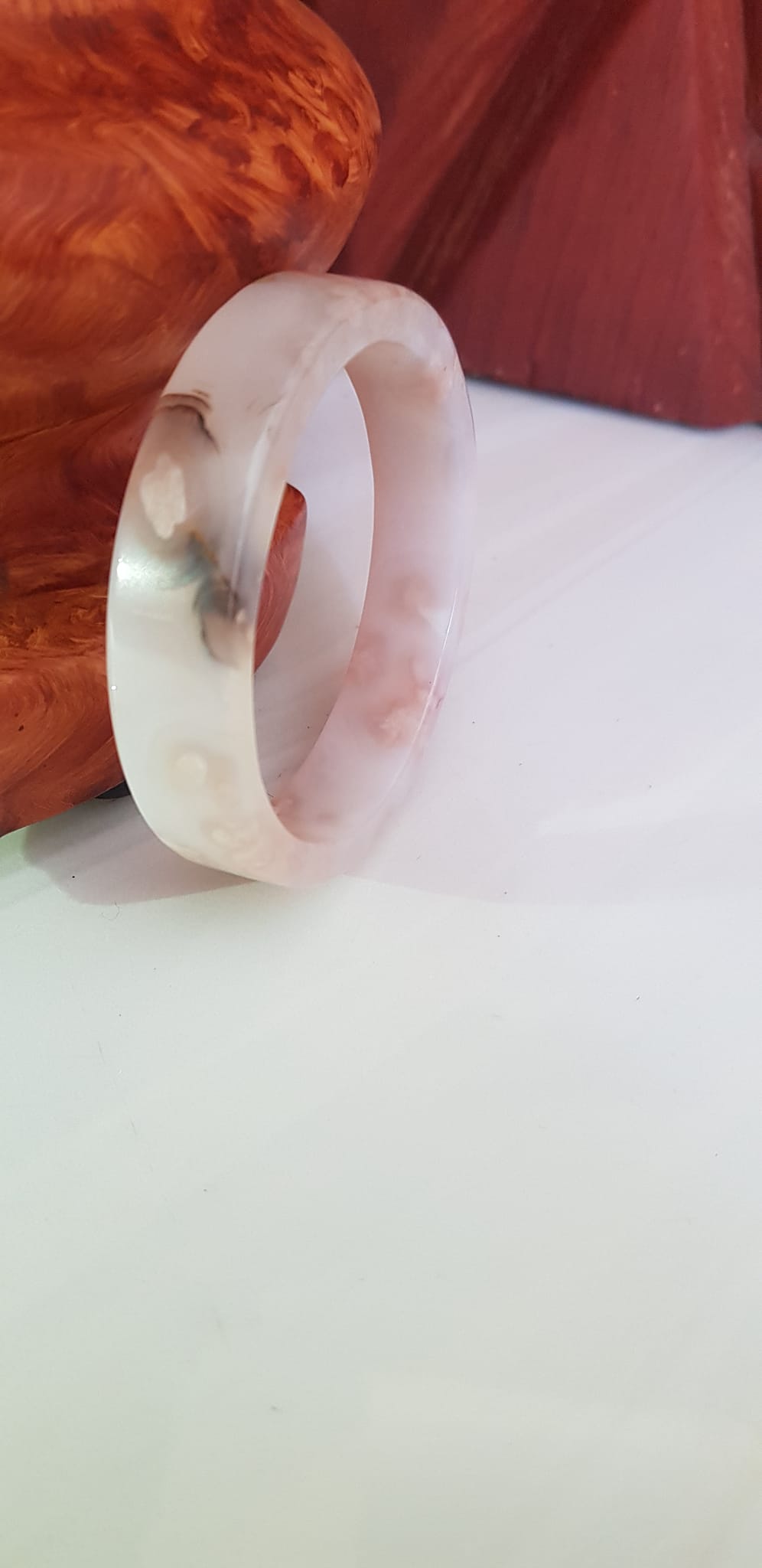 Vòng tay Nữ Bản Hẹ Mới Đá Mã Não Bông Tuyết Hồng nhẹ trắng trong bóng quá đẹp luôn ạ Ni 53mm x Cao 11mm x dầy 7mm Nữ Cân nặng 52kg - 55kg đeo
