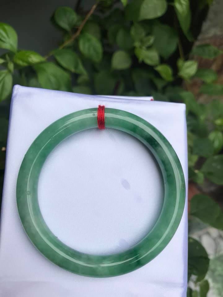 Vòng cẩm thạch Ngọc Đẹp Lý A SỊN 50mm x 7mm tự nhiên màu xanh ngọc bóng điểm xanh nữ 50kg - 54kg ạ