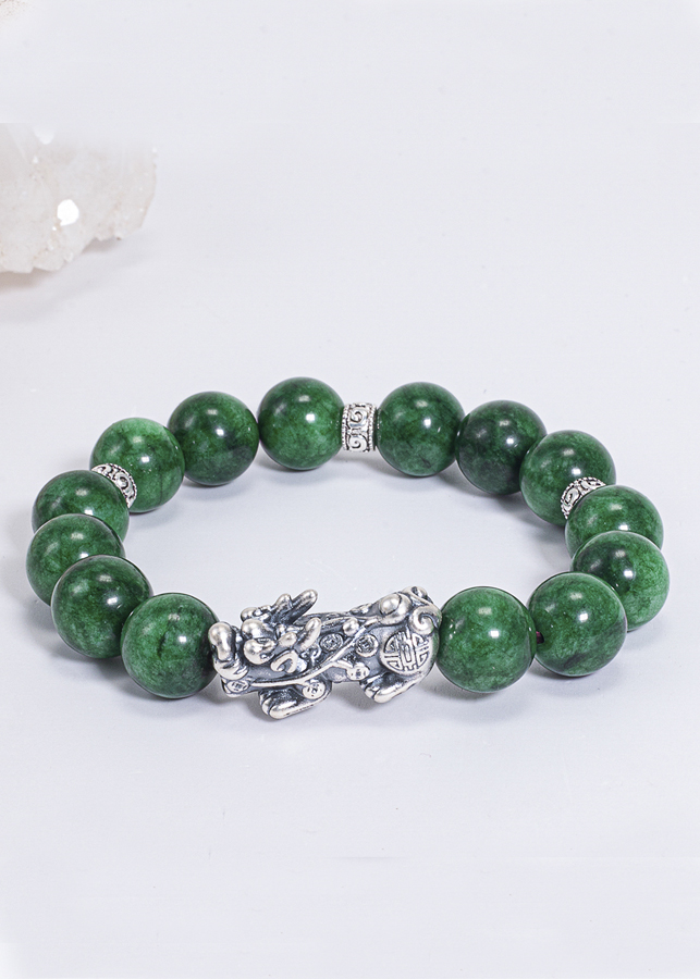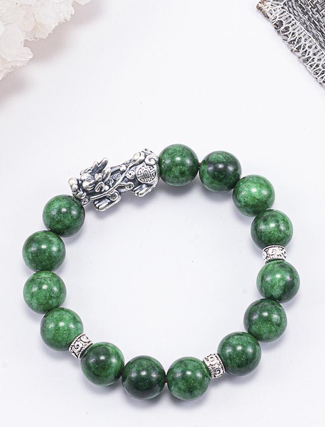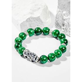 Vòng Tay Phong Thủy Đá Cẩm Thạch Sơn Thủy Phối Charm Tỳ Hưu Bạc (10mm) Mệnh Mộc, Hỏa