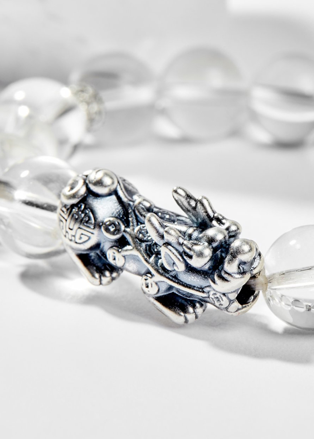 Vòng Tay Phong Thủy Đá Thạch Anh Trắng Phối Charm Tỳ Hưu Bạc (10mm) Mệnh Kim, Thủy