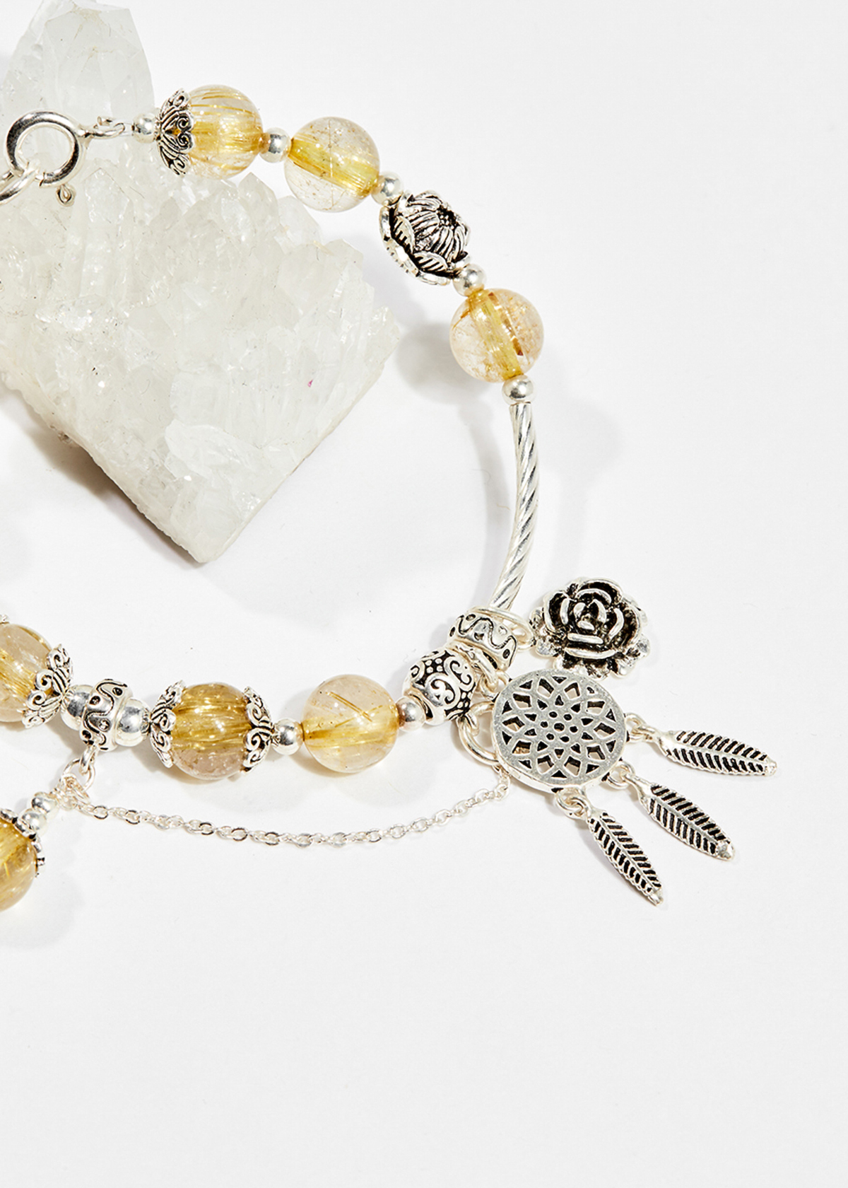 Vòng tay đá thạch anh tóc vàng phối charm bạc - Hợp mệnh kim, thủy | Ngọc Quý Gemstones |