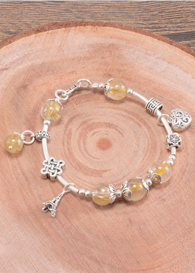 Vòng tay đá thạch anh tóc vàng phối charm bạc - Hợp mệnh kim, thủy | Ngọc Quý Gemstones |