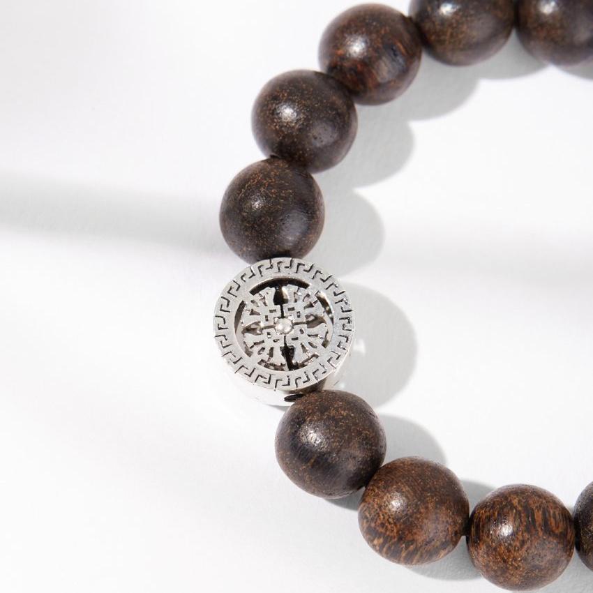 ✨Vòng Tay Trầm Hương Charm Bạc 925 Bánh Xe Pháp Luân Phong Thủy Udumbara