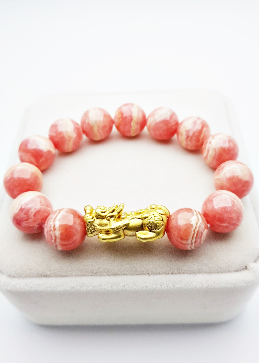 Mua tại TiktokVòng Tay Tỳ Hưu Đá Đào Hoa Rhodochrosite 14mm