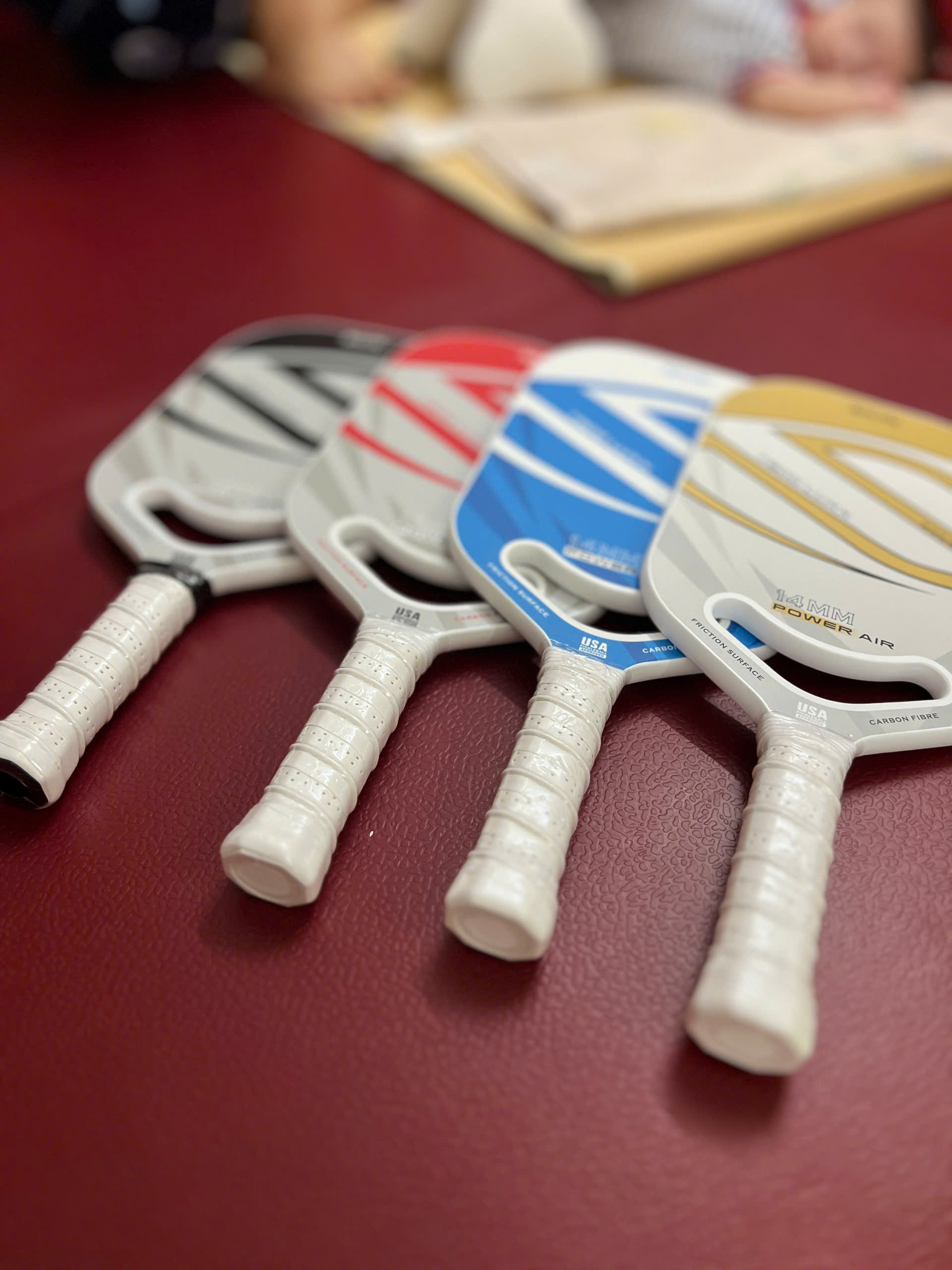 - Tên sản phẩm: Vợt Pickleball cho bé ️ Kích thước: 35cm * 17cm * 1cm ️ Trọng lượng: 160g ️ Chất liệu: Sợi thủy tinh cao cấp + lõi tổ ong PP ️ Tính năng: Dễ mang theo, Chống trượt, nhẹ ️ Cấp độ kỹ năng: Trẻ em, Người mới bắt đầu, mọi người chơi Đặc điểm sản phẩm: -Chất liệu cao cấp: Bộ bóng pickleball có bề mặt sợi thủy tinh chắc chắn + lõi tổ ong polypropylene. Vật liệu chất lượng cao giúp vợt pickleball