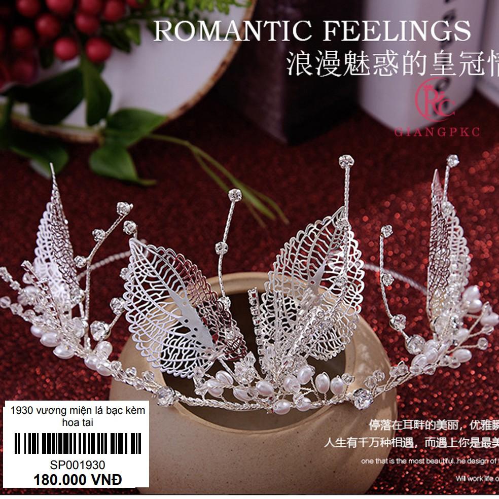 ✨Vương miện cô dâu lá bạc đính hạt trai kèm bông tai Giangpck Sp001930