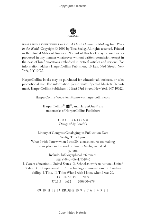 “Forget 20--This is the kind of stuff I wish I knew now... Tina is doing us all a big favor by giving us a roadmap to life!” (Guy Kawasaki, co-founder of Alltop and author of Reality Check )