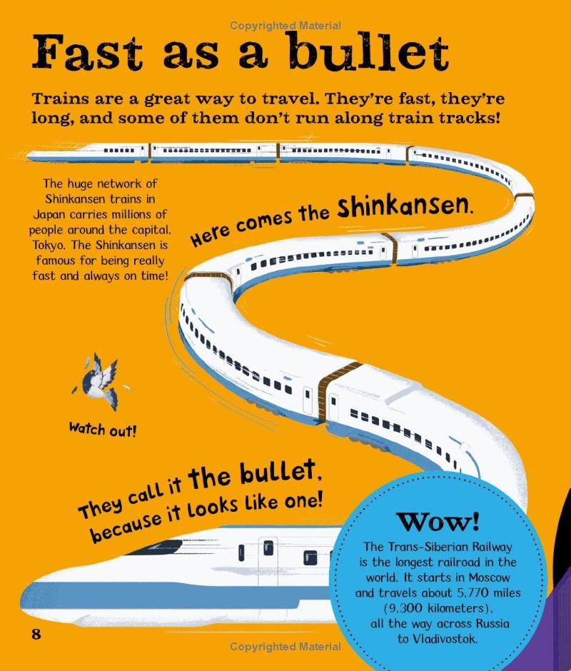 Did you know that the first train reached a top speed of only 5 miles per hour, that helicopters are also called whirlybirds, and that some submarines can stay underwater for months at a time? Learn more surprising facts in this lively and fascinating picture book all about vehicles.