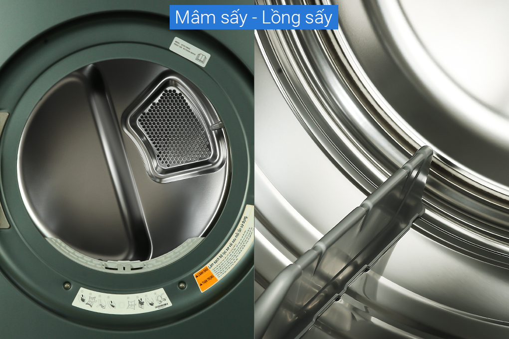 - Sản phẩm có khả năng giặt 25 kg và sấy 17 kg nên đáp ứng nhu cầu giặt giũ cho những hộ gia đình nhiều thành viên, trên 7 người.