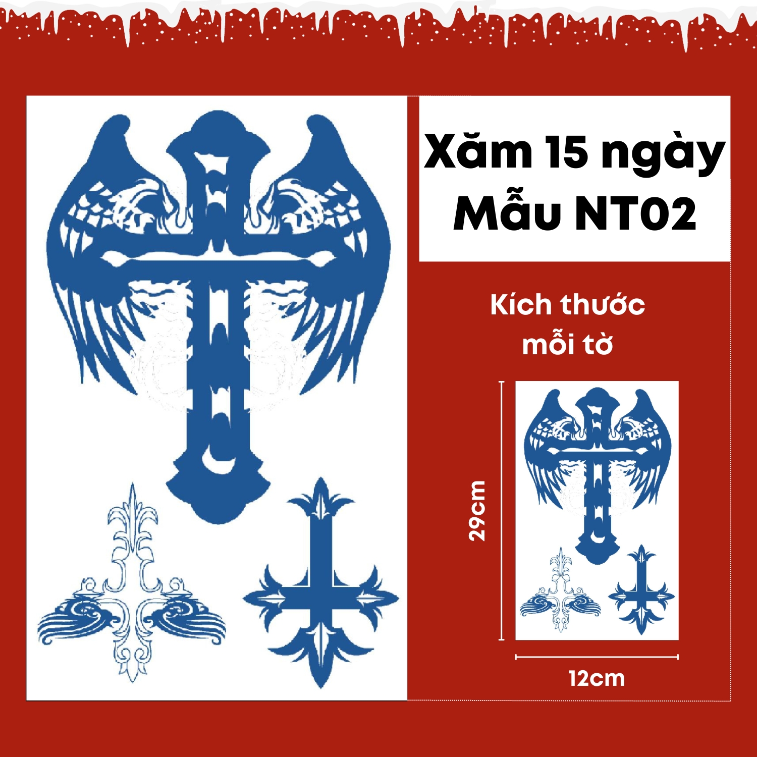 THÔNG TIN SẢN PHẨMCó các lựa chọn:- Bộ YS - 10 tờ xăm sáng (Mỗi bộ có 10 mẫu tương ứng với 10 tờ). Sẽ phát sáng trong bóng tối, lưu trên da 1-2 ngày, có thể chùi rửa.Kích thước (1 tờ): Dài 12cm Rộn...