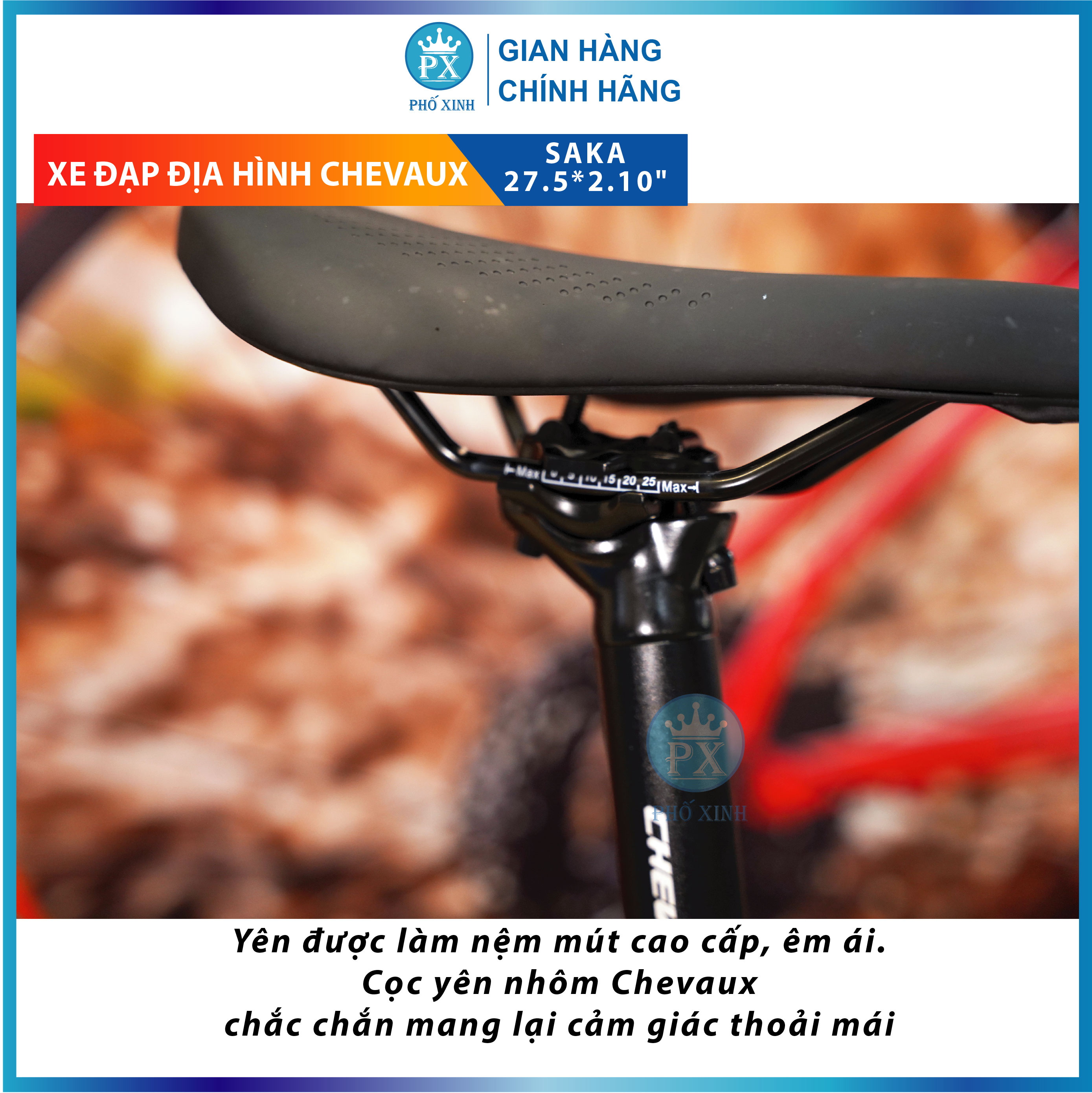 Yên được làm nệm mút cao cấp, êm ái. Cọc yên hợp kim chắc chắn mang lại cảm giác thoải mái cho người đạp xe khi di chuyển những cung đường dài, gập ghềnh.