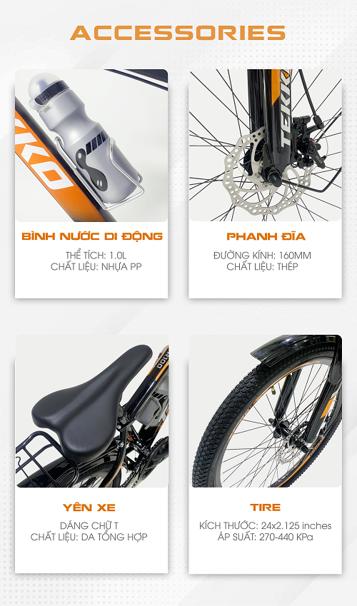 ✨Xe đạp Tekko thể thao R100 cỡ bánh 24 inch (Phù hợp với người cao từ 1m35 đến 1m60)