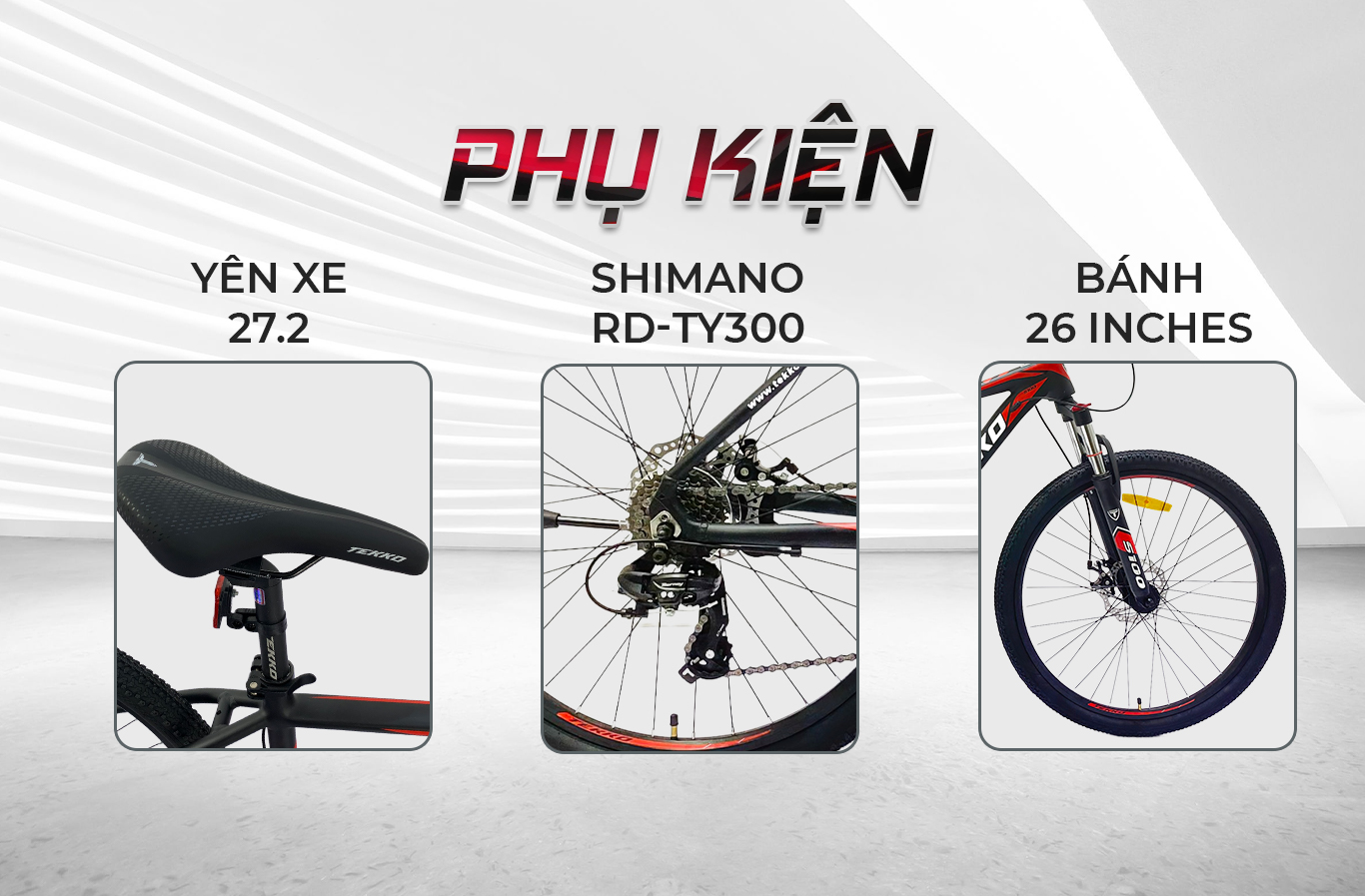 ✨Xe đạp thể thao Tekko S100 Khung nhôm cao cấp, cỡ 26 inch Phù hơp với người cao từ 1m45 trở lên