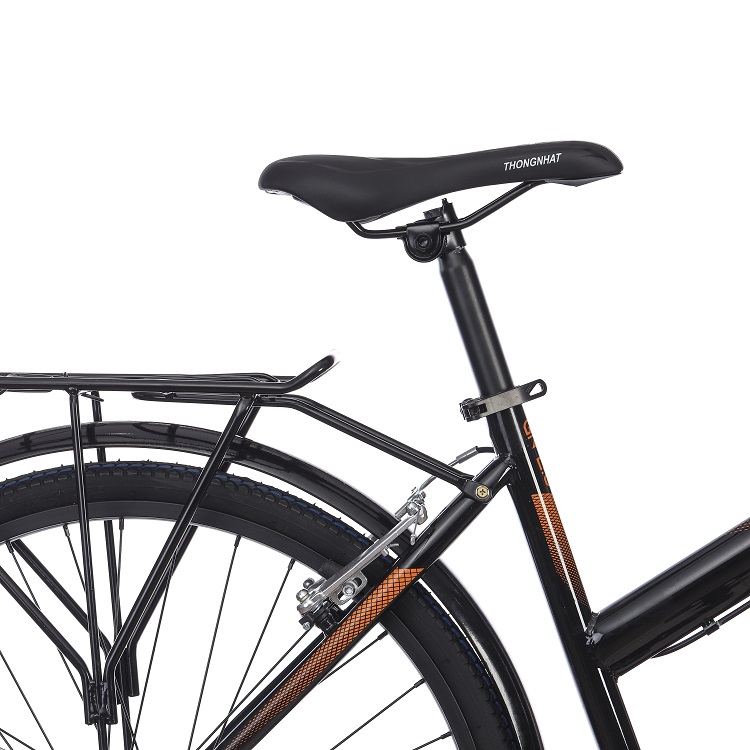 Mua tại TiktokThiết kế tối giản, gọn đẹp Xe đạp đường phố thể thao Thống Nhất GN2.0 - 26 inch có kiểu dáng hiện đại, đường nét tinh tế, tông màu ghi, đen và cam mang đến cho bạn nhiều màu sắc để lựa chọn phù hợp với sở thích của mình. Mẫu xe đạp này ứng dụng công nghệ sơn tĩnh điện giúp duy trì tính thẩm mỹ cao, cho khả năng chống chịu tốt trước các điều kiện môi trường khác nhau. Đáp ứng nhu cầu chơi thể thao, làm phương tiện đi học, đi làm thường ngày của người trưởng thành có chiều cao trung bình khoảng 155 cm - 170 cm. Sườn thép gia công chắc chắn Với khung bằng thép có độ bền cao, giữ cấu trúc xe vững chãi, cho khả năng chịu tải trọng toàn xe lên tới 110 kg. Thiết kế dây phanh được đặt dọc theo sườn xe một cách gọn gàng giúp xe đạp đường phố Thống Nhất trông đẹp mắt và hỗ trợ cho việc bảo dưỡng thuận tiện hơn. Chuyển hướng xe linh hoạt với ghi đông ngang Giống như khung sườn, ghi đông cũng được làm từ thép, vật liệu giúp tay lái cứng cáp kết hợp thiết kế ngang đơn giản giúp bạn kiểm soát hướng đi, lái xe dễ dàng. Bộ phận tay nắm được gắn chặt vào ghi đông, chế tạo cho độ bám cao để bạn nắm ổn định, không sợ trượt tay trong khi lái xe đạp đường phố Hệ thống phanh nhạy bén, sử dụng an toàn Tích hợp phanh vành trước và sau cho phản hồi nhanh mỗi khi bạn thắng xe, nhờ đó giúp đảm bảo cho người lái xe an toàn mỗi khi cần dừng xe lại hoặc xử lý tình huống khẩn cấp. Ngoài ra, với kết cấu đơn giản, hệ thống phanh dễ thay mới và bảo trì, giúp tiết kiệm chi phí và thời gian cho bạn tối đa. Phuộc cứng hạn chế rung lắc Mẫu xe đạp Thống Nhất này được trang bị phuộc trước bằng thép rắn chắc giúp giữ cho xe di chuyển ổn định từ mặt đường phẳng cho đến những đoạn đường gồ ghề, khó di chuyển. Yên xe mềm mịn, ngồi thoải mái mọi lúc Chất liệu da cho yên xe ngồi êm ái trong suốt thời gian bạn lái xe, dễ dàng lau chùi khi bám bẩn. Yên phụ cứng cáp, chịu lực tốt, đáp ứng tải trọng 30 kg cho bạn chở hàng hóa hoặc người tiện lợi. Di chuyển mượt mà với bánh xe 26 inch Cả hai bánh xe đều có kích thước 26 inch phù hợp với cấu trúc của toàn bộ xe khi bạn lái nhanh hay chậm đều hoạt động ổn định, nhịp nhàng. Bộ phận lốp xe 26"x1 3/8 sử dụng bền, trên bề mặt có nhiều rãnh giúp tăng tính ma sát cho quá trình lái xe thêm vững vàng. Vành xe bằng hợp kim nhôm có tính chống oxy hóa, chống ăn mòn tốt, khối lượng nhẹ nên cho tổng thể xe nhẹ hơn, di chuyển dễ dàng hơn khi đi qua những địa hình khó khăn. Tiện ích đi kèm Sử dụng đèn phản quang giúp phản chiếu ánh sáng, bảo vệ người dùng tốt hơn khi đi qua những đoạn đường khuất trong bóng tối. Có chân chống thiết kế ở vùng bánh xe sau giúp cho xe tự đứng vững, không bị nghiêng, ngã mà không cần bất kỳ điểm tựa nào. Thông tin chung