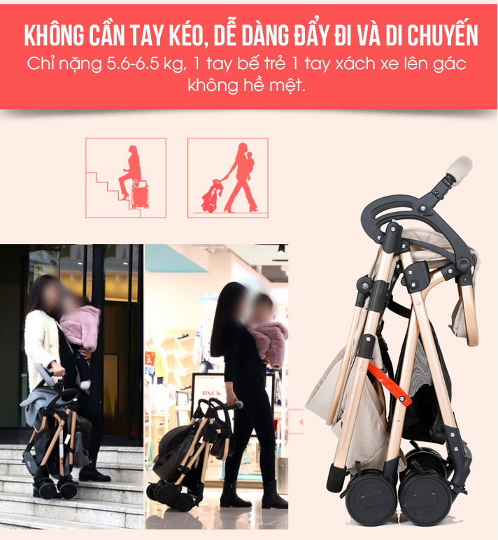 Xe đẩy Belecoo Travel 2 chiều 3 tư thế siêu nhẹ ️ Xe dáng thể thao gầm cao chống bụi và được làm bằng hợp kim nhôm vô cùng vững chắc, chịu trọng lượng lên
