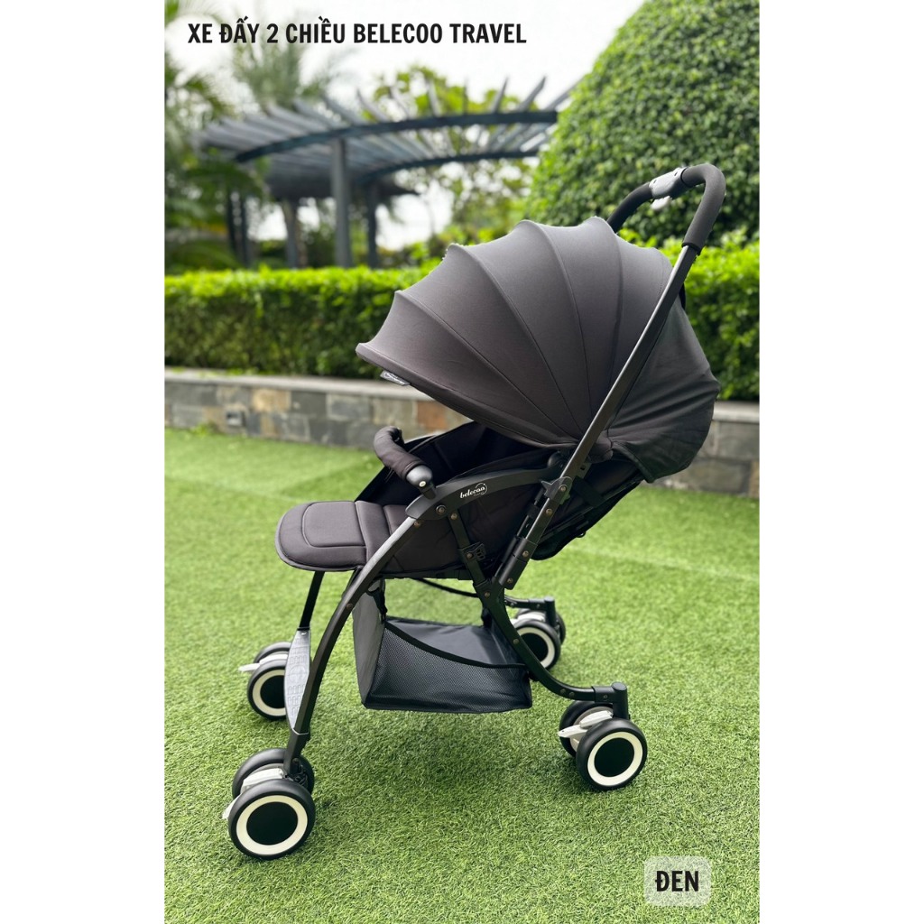 Xe đẩy Belecoo Travel 2 chiều 3 tư thế siêu nhẹ ️ Xe dáng thể thao gầm cao chống bụi và được làm bằng hợp kim nhôm vô cùng vững chắc, chịu trọng lượng lên