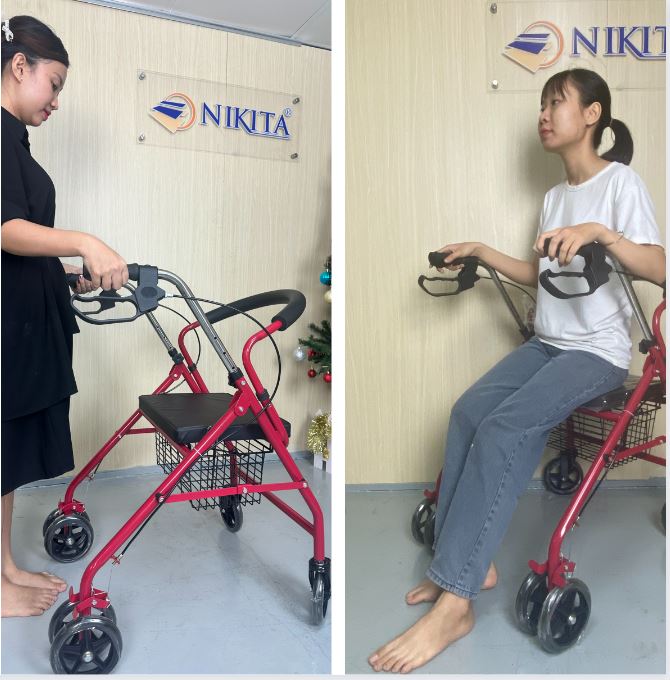 Xe tập đi bốn bánh cho người già có ghế ngồi, có giỏ đựng đồ, gấp gọn khi không sử dụng, chính hãng Nikita Xe tập đi có bánh lăn được thiết kế cổ điển