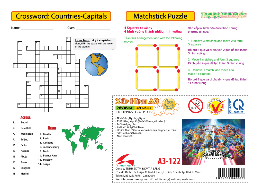 ✨Xếp hình Tia Sáng Super Smash Bros (48 Mảnh Ghép) - Tặng kèm câu đố mặt sau cho bé