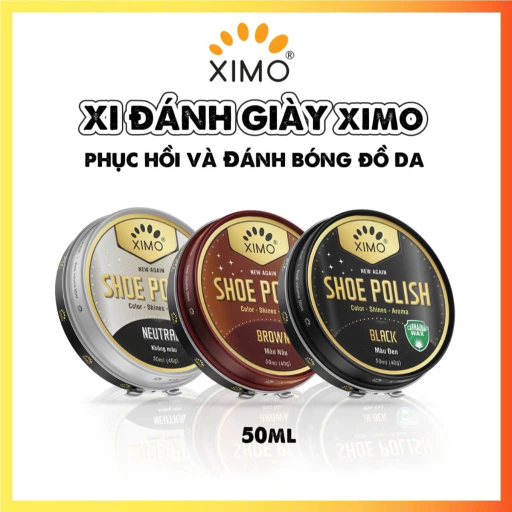 ✨Xi Đánh Giày Sáp Shoe Polish XIMO 50ml XI08 giúp giày túi xách, ví, thắt lưng, đồ giả da sáng bóng tự nhiên, bảo dưỡng bền đẹp lâu hơn, tăng khả năng chống thấm nước hiệu quả