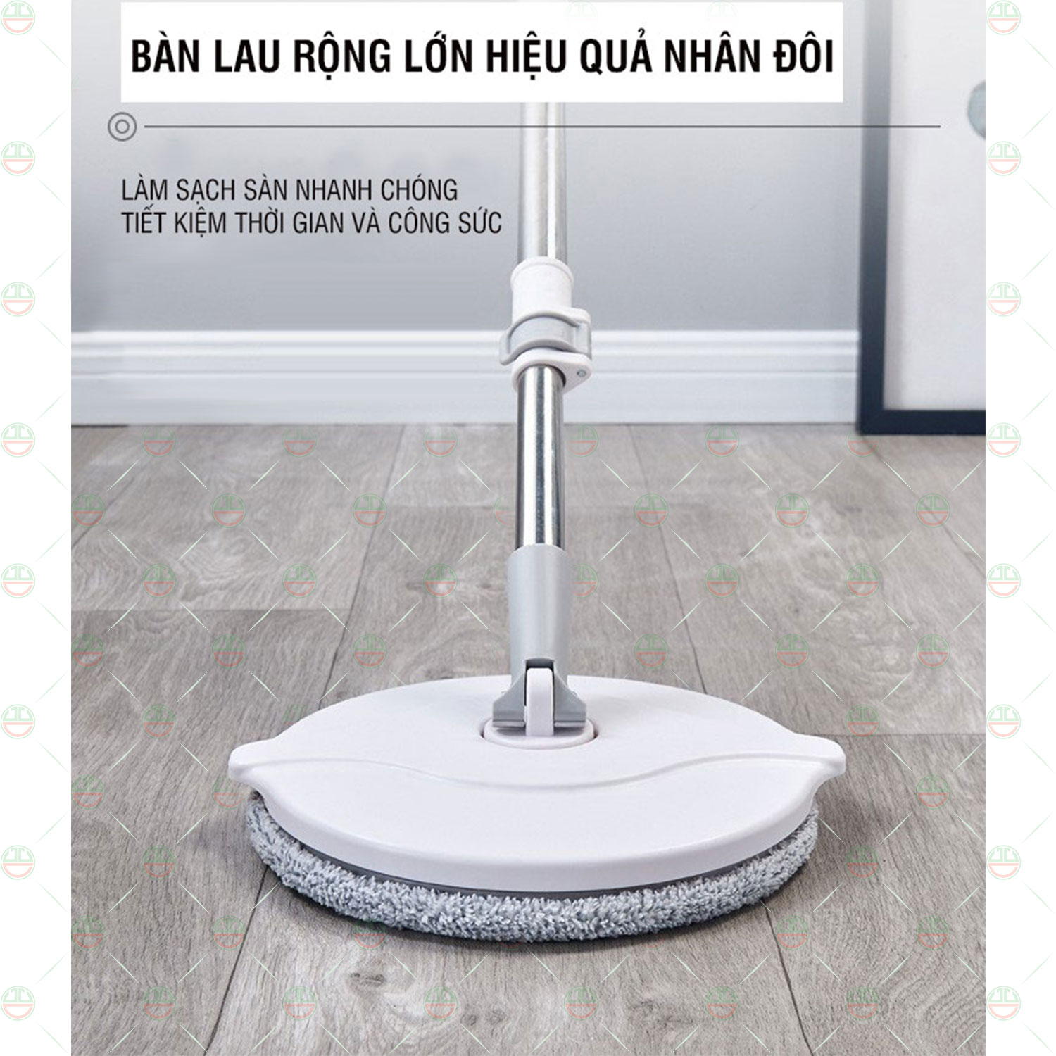 • Bàn lau hình tròn, đường kính 25cm có thể xoay 360 độ tiện lợi, bàn lau to giúp lau nhanh hơn và hiệu quả hơn. Giẻ lau chất liệu microfiber rất dày thấm hút nước cực tốt, hút bụi và lông tóc hiệu quả.
