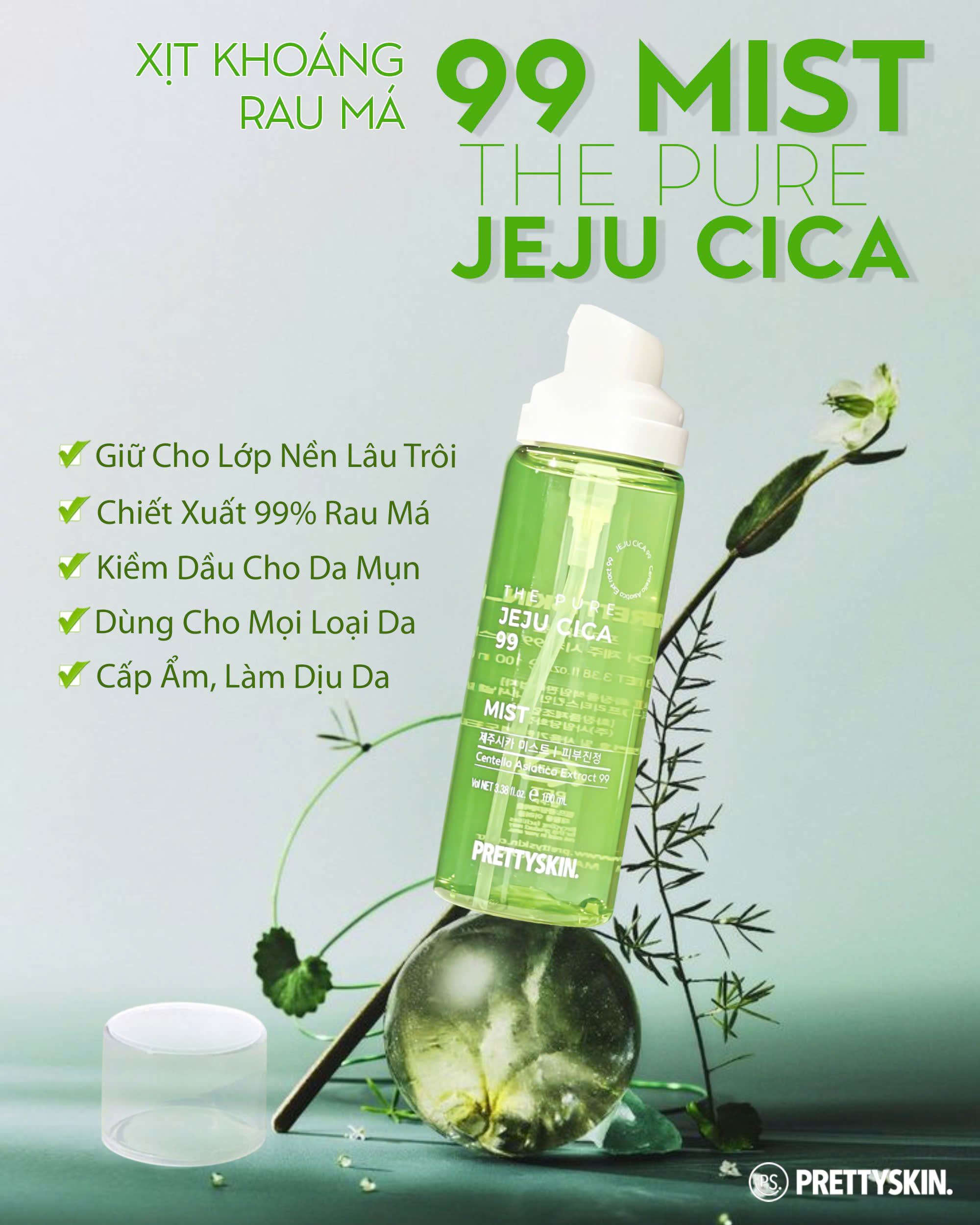 Mua tại TiktokXịt khoáng rau má Pretty Skin The Pure Jeju Cica 99 Mist làm dịu cấp ẩm cho da Xuất xứ: Hàn Quốc. Thương Hiệu: Prettyskin. Dung tích: 100ml. Phù hợp: Mọi loại da, đặc biệt da dầu, mụn CÔNG DỤNG VÀ THÀNH PHẦN