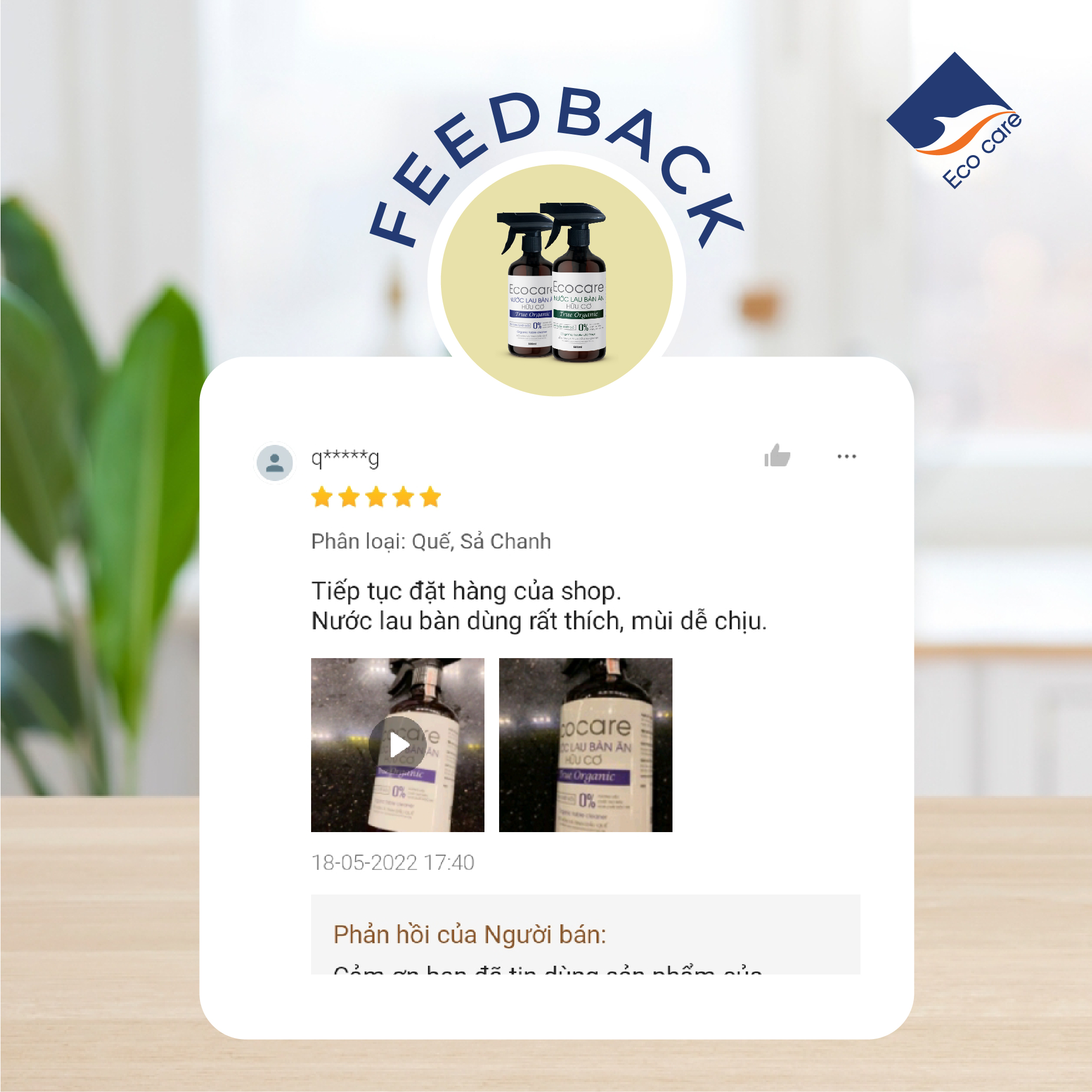 ✨Xịt Lau bàn ăn hữu cơ Bồ hòn tinh dầu Quế 500ml thương hiệu Ecocare