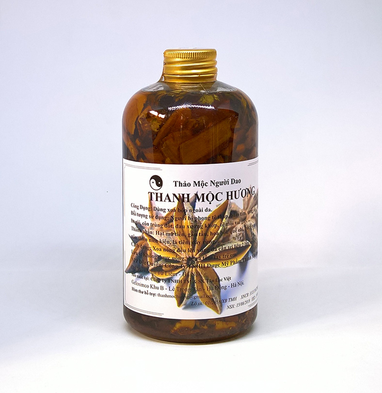 Chi tiết về thảo dược xoa bóp Thanh Mộc Hương Đây là một bài thuốc dân gian của đồng bào dân tộc Dao, được nghiên cứu kĩ lưỡng từ lương y Lặng Thị Châm kết hợp từ nhiều loại thảo mộc thiên nhiên như hạt mã tiền, gấu tầu, hoa hồi, bách xanh, dáy rừng, lá tiên, quý chi và một số vị thuốc gia truyền khác với quy trình bào chế hiện đại do được áp dụng công nghệ vào sản xuất đảm bảo hợp vệ sinh an toàn cho sức khỏe người dùng.