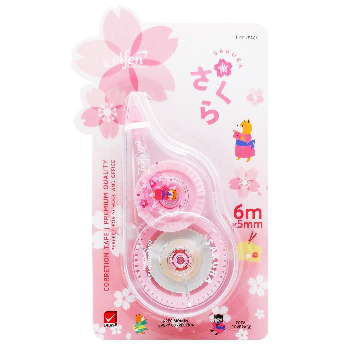 Mua tại TiktokXóa Kéo Sakura - 5 mm x 6 m - Elfen - Với hệ thống bánh răng cưa, giúp cho sản phẩm ra đều và chắc chắn. - Vỏ bút được làm từ nhựa cứng