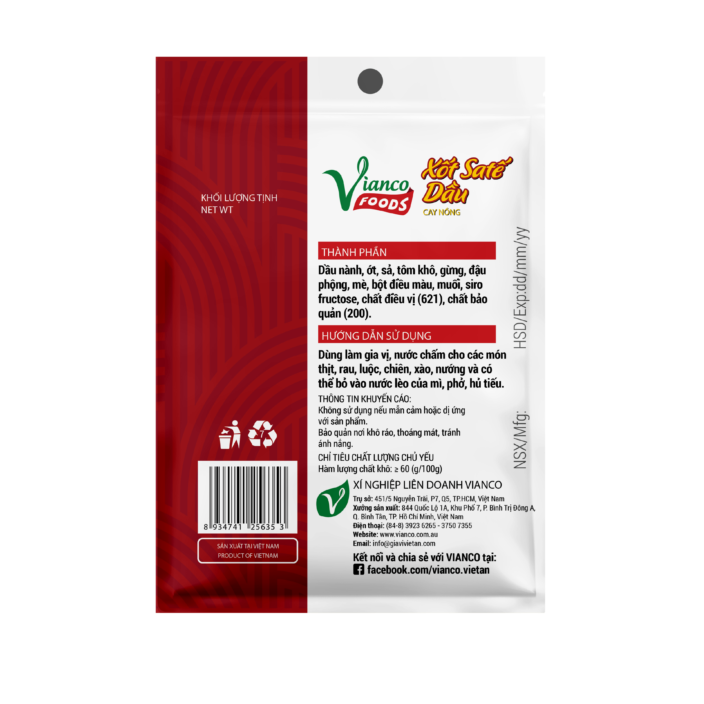 Mua tại TiktokXốt sa tế dầu ViancoFoods Việt Ấn là sản phẩm được ưa chuộng với thành phần nguyên liệu tươi, hoàn toàn từ thiên nhiên. Đặc biệt xốt sa tế dầu ViancoFoods có đầy đủ các nguyên liệu cần thiết. Từ tỏi, sả, ớt, tôm thêm các nguyên liệu đặc biệt như mè, đậu phộng mang đến hương vị thơm ngon cho mọi món ăn. Có thể thêm vào món nước, món chiên, làm món nướng đến chấm với đồ luộc, … đều ngon. Đây cũng là một sản phẩm với công thức hương vị truyền thống lưu truyền 63 năm từ Vianco. Rất hợp khi “đi đôi” cùng các loại gia vị bán hoàn chỉnh phở bò, bò kho, bún bò cho các món Việt này. KẾT TINH 100% NGUYÊN LIỆU THIÊN NHIÊN